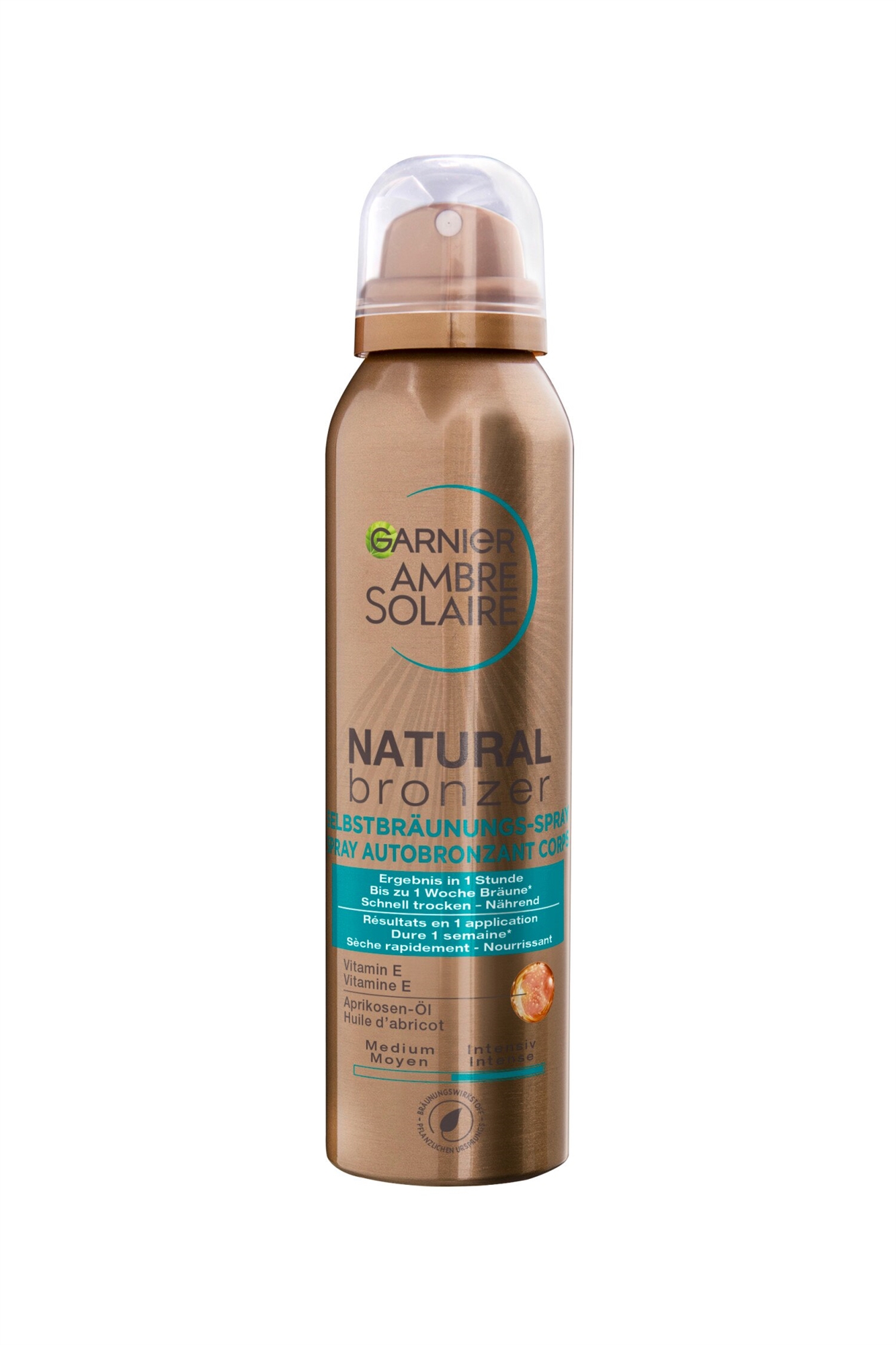 Спрей для самозагара Garnier Ambre Solaire Natural Bronzer придает коже естественный и здоровый летний загар в любое время года. Спрей легко наносится, быстро впитывается и оставляет ровный загар без разводов. Нежная текстура содержит увлажняющее масло абрикосовых косточек, обеспечивающее коже дополнительный уход. Оно насыщает кожу влагой, предотвращая ее пересыхание и сохраняя эластичность. Спрей-самозагар начинает действовать уже через час и обеспечивает стойкий загар, который держится до недели.