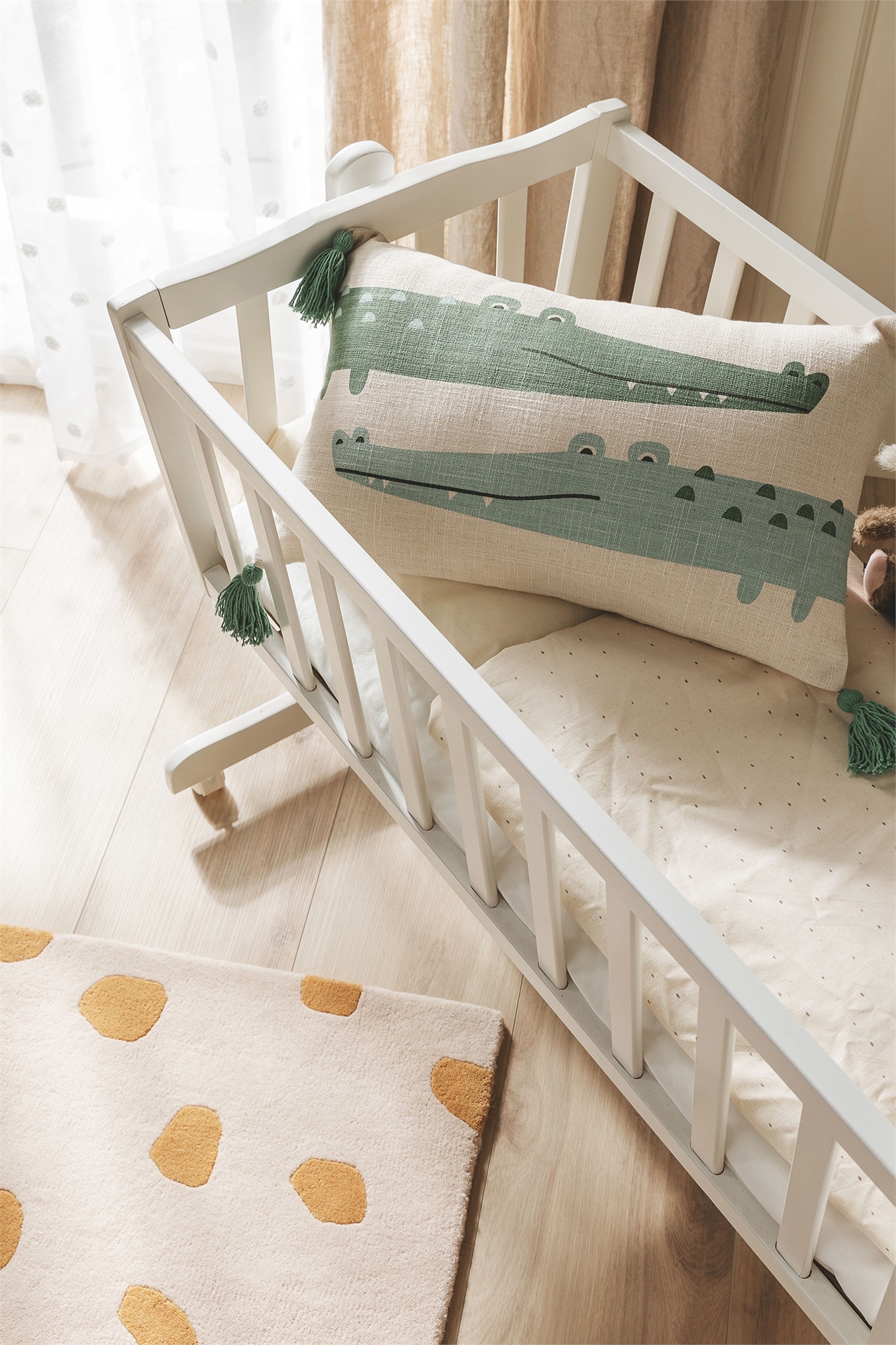 Чехол для подушки Savannah изготовлен вручную из 100% хлопка. Этот товар от бренда Lytte имеет зеленый цвет и следующую структуру: Геометрический, Животные мотивы. Размеры изделия: 30x50 см.