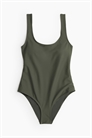 Полностью закрытый купальник на подкладке, плотно облегающий талию. Глубокий круглый вырез спереди и сзади, широкие бретели и чашечки со съемными вкладышами, которые формируют бюст и обеспечивают хорошую поддержку. Средняя посадка сзади.