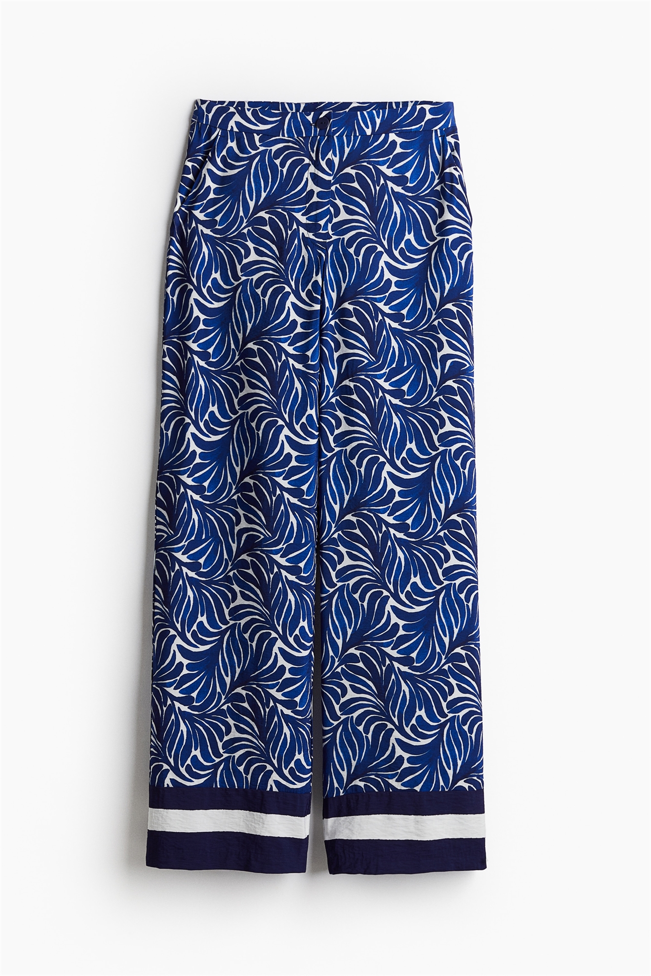 Приталенные брюки из тканого материала из смеси вискозы. Регулярная талия, застежка на молнию и пуговицу, диагональные боковые карманы и широкие ноги.