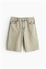 Шорты длиной до колена с 5 карманами из жесткого хлопкового денима, который сначала кажется твердым, но затем смягчается и ослабевает при носке. Регулярная талия, ширинка на молнии и пуговице и необработанные края.