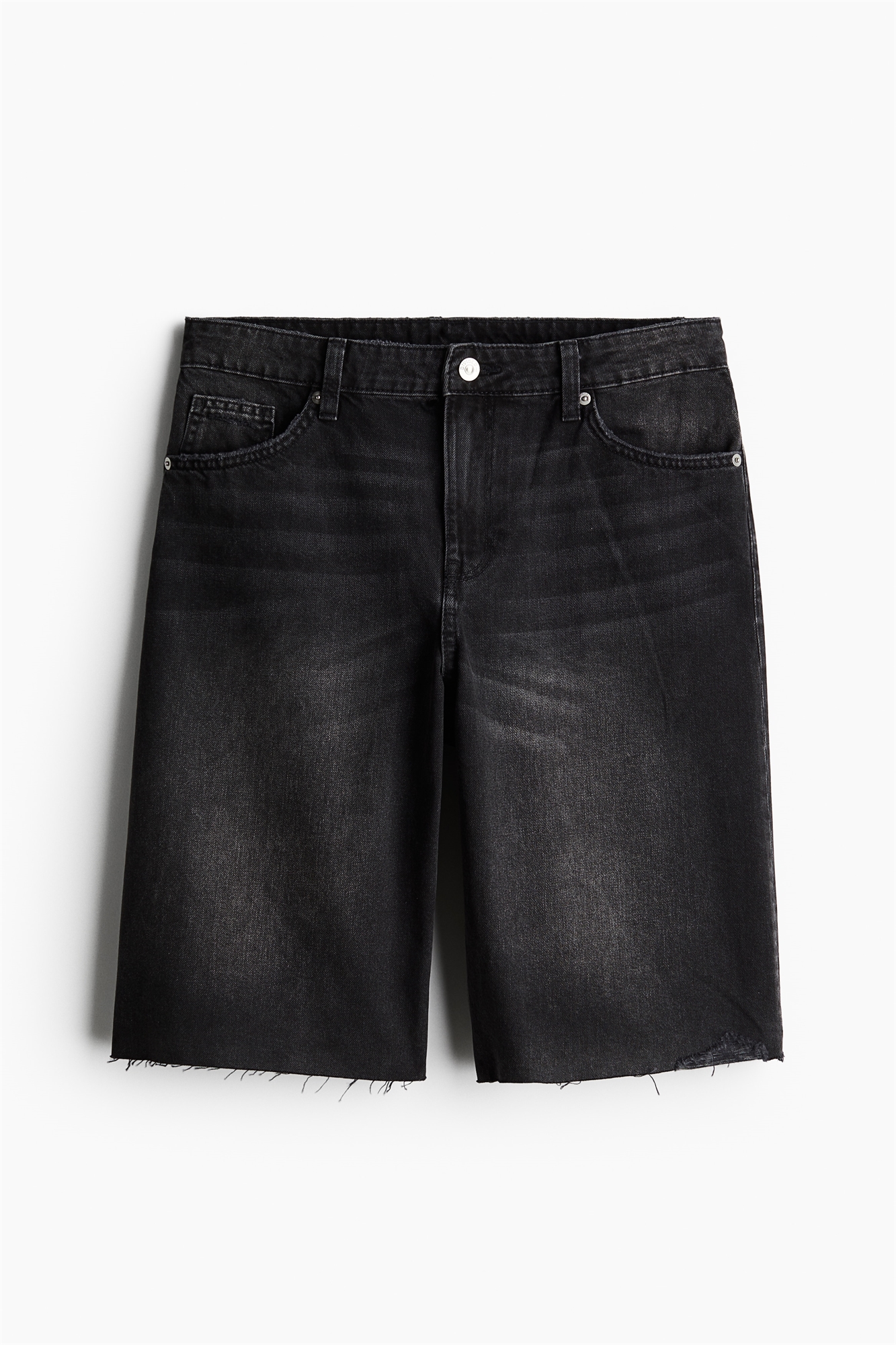 Шорты длиной до колена с 5 карманами из жесткого хлопкового денима, который сначала кажется твердым, но затем смягчается и ослабевает при носке. Регулярная талия, ширинка на молнии и пуговице и необработанные края.