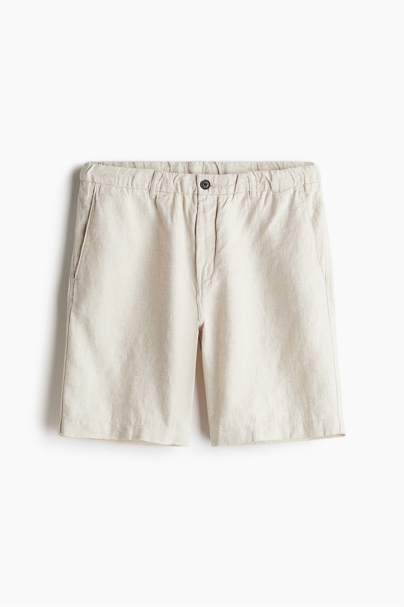 Шорты из воздушного льна с эластичной отделкой и скрытым шнурком на талии, ширинка на молнии и пуговице, боковые карманы и накладные задние карманы с пуговицей. Ткань из льна хорошо пропускает воздух, прекрасно гладится и мнется, а также смягчается со временем. Регулярный крой для комфортной носки и классического силуэта.