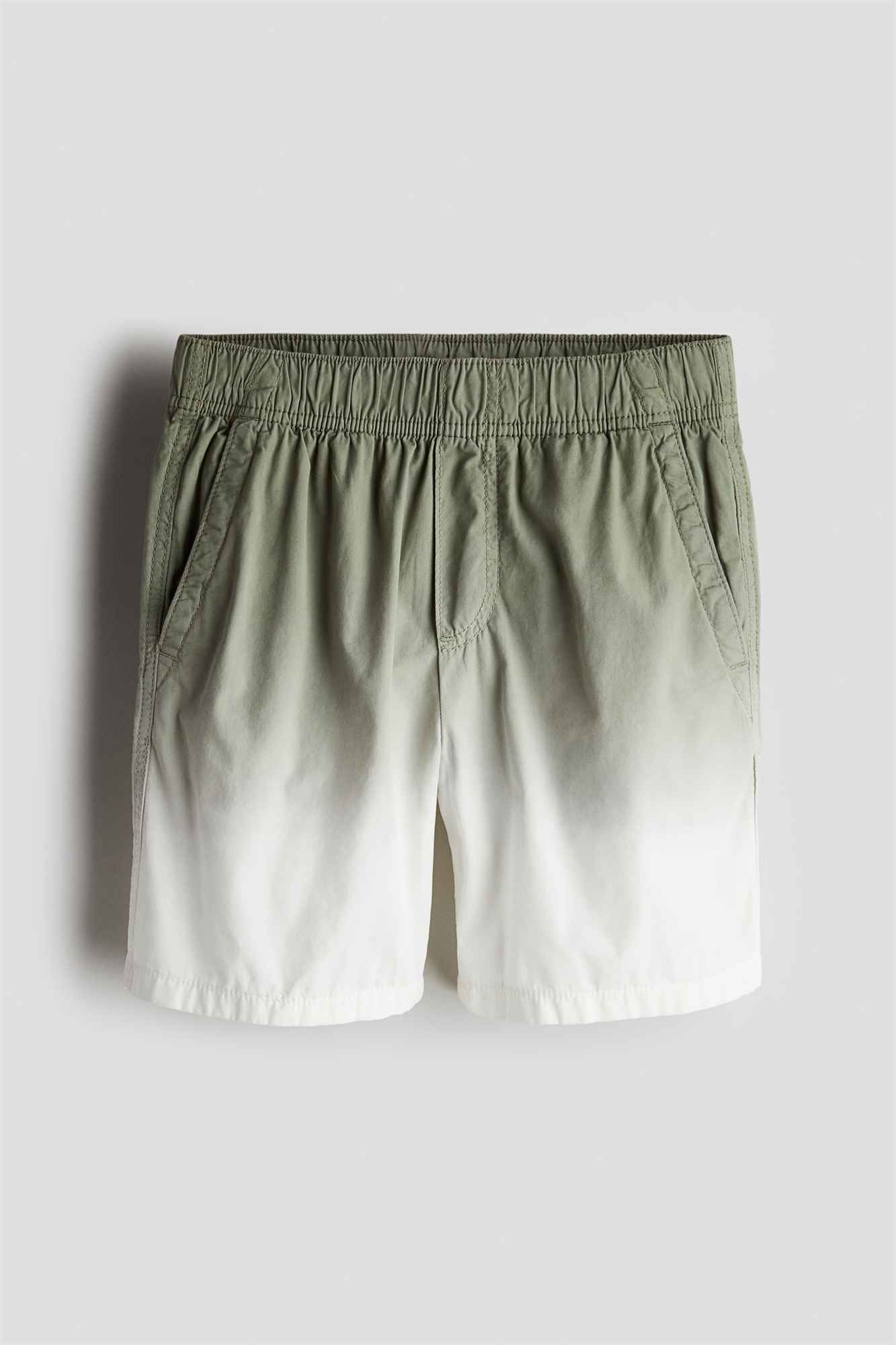 Шорты из хлопкового полотна с непринужденной посадкой по бедрам и ляжкам. Легко надеваются, эластичный пояс со скрытым шнурком, фальшивая ширинка и диагональные боковые карманы.