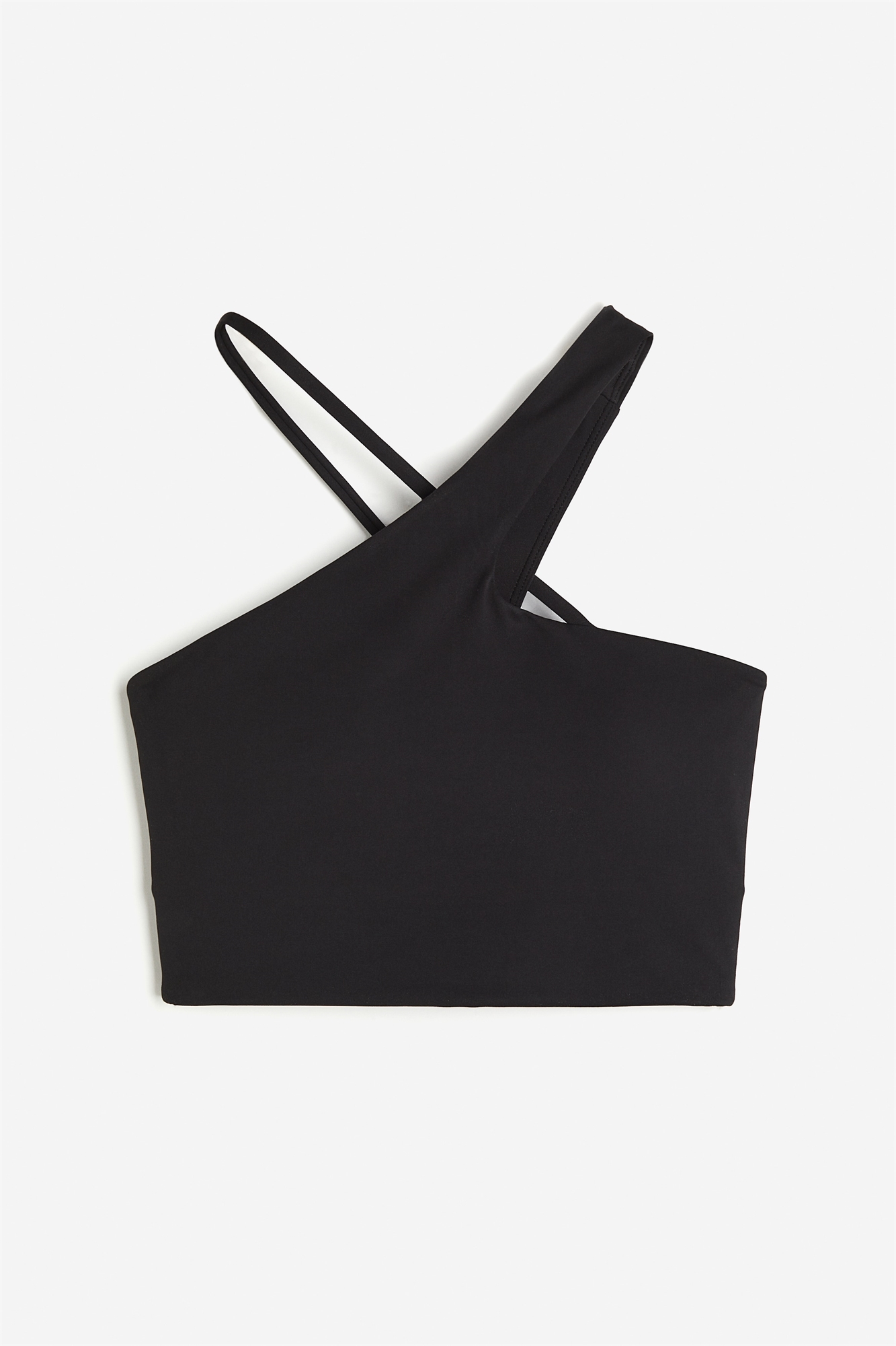 Спортивный бюстгальтер из функциональной ткани DryMove™, которая помогает отводить влагу от кожи, и SoftMove™, супермягкой, функциональной ткани, которая отличается легкостью и обеспечивает дополнительную свободу движений. Асимметричный вырез и перекрещивающиеся спереди и сзади бретели, одна из которых более узкая для динамичного эффекта. Чашечки на подкладке со съемными вкладышами для регулировки посадки и придания формы бюсту. Эластичная вставка по подолу. Без застежек. Легкая поддержка, подходящая для тренировок низкой интенсивности.