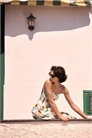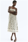 Платье длиной до колена из хлопкового полотна со съемными регулируемыми бретелями-спагетти и лифом с отделкой из плавок, вырезом в форме сердца с отделкой из оборок и эластичным швом по центру бюста. Присборенный шов на талии и расклешенная юбка. Без подкладки.