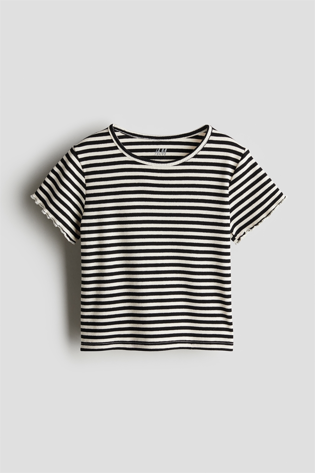 Топ из мягкого ребристого трикотажа с круглым вырезом и короткими рукавами с оверлочным краем на манжетах.
