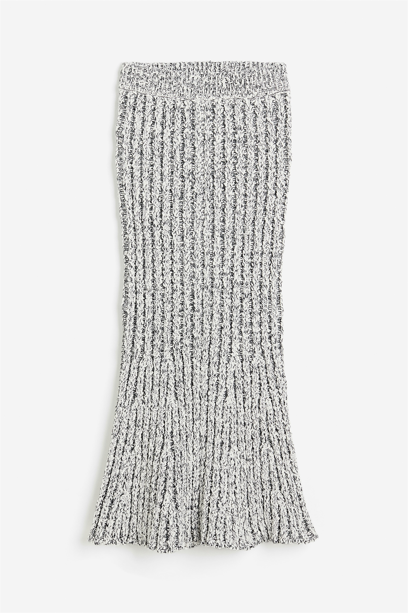 Приталенная юбка длиной до колен из мягкого трикотажа в рубчик с заниженной талией и расклешенным подолом.