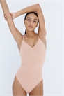 Боди-стринги с упругим скульптурным эффектом на животе. Чашки без подкладки с цельнокроеным срезом для увеличения бюста и легкой поддержки. Регулируемые бретели и ластовица на подкладке с потайными кнопками. Боди сконструировано с минимальным количеством швов для бесшовного, комфортного ощущения на коже.
