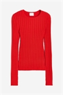 Облегающий топ из тонкого трикотажа в рубчик с круглым вырезом, длинными рукавами и необработанными краями на манжетах и подоле.