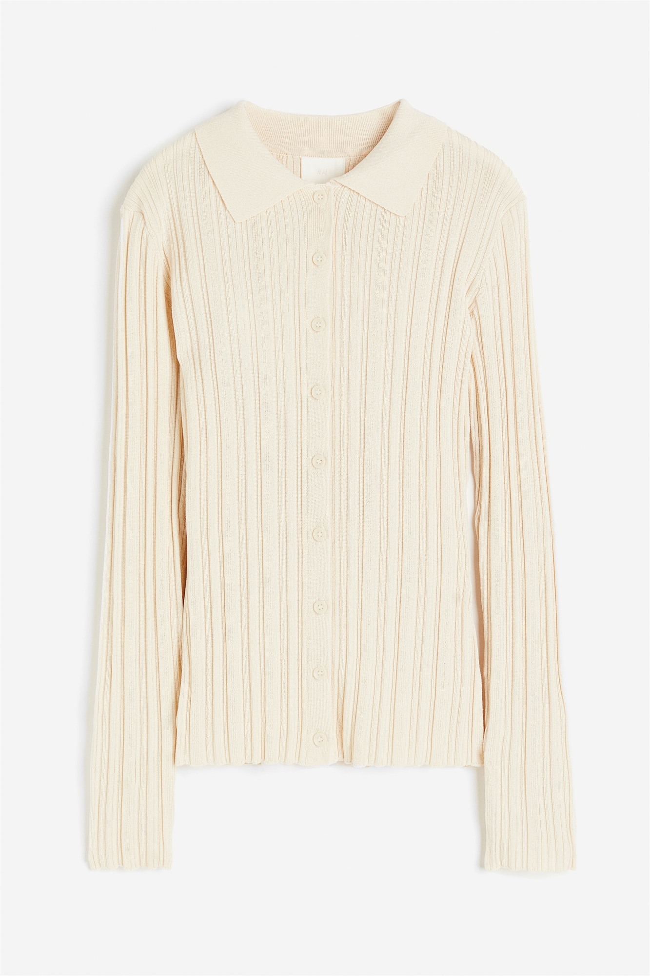 Приталенный топ с длинными рукавами из трикотажа в рубчик с воротником и пуговицами спереди.