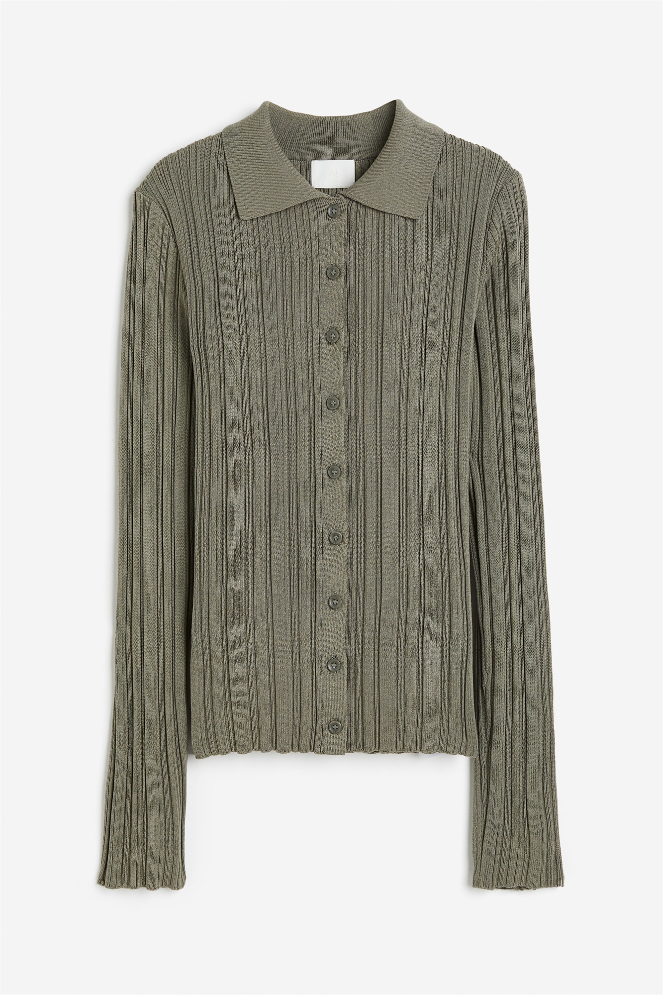 Приталенный топ с длинными рукавами из трикотажа в рубчик с воротником и пуговицами спереди.
