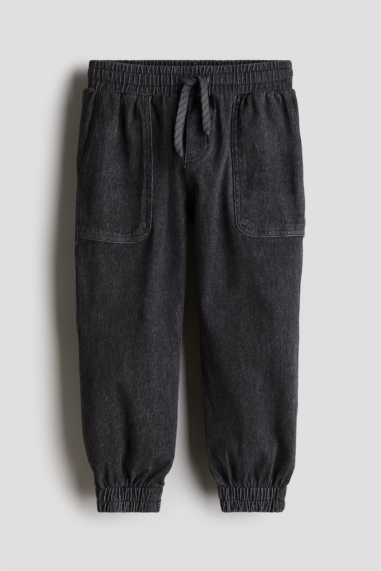 Джоггеры свободного покроя из легкой толстоватой ткани с потертым видом. Эластичная ткань и утягивающий шнурок на талии. Фальшивая ширинка, боковые карманы, открытые задние карманы, карман на штанине и петля для молотка с одной стороны. Аккуратные зауженные ножки с эластичной вставкой по краям.