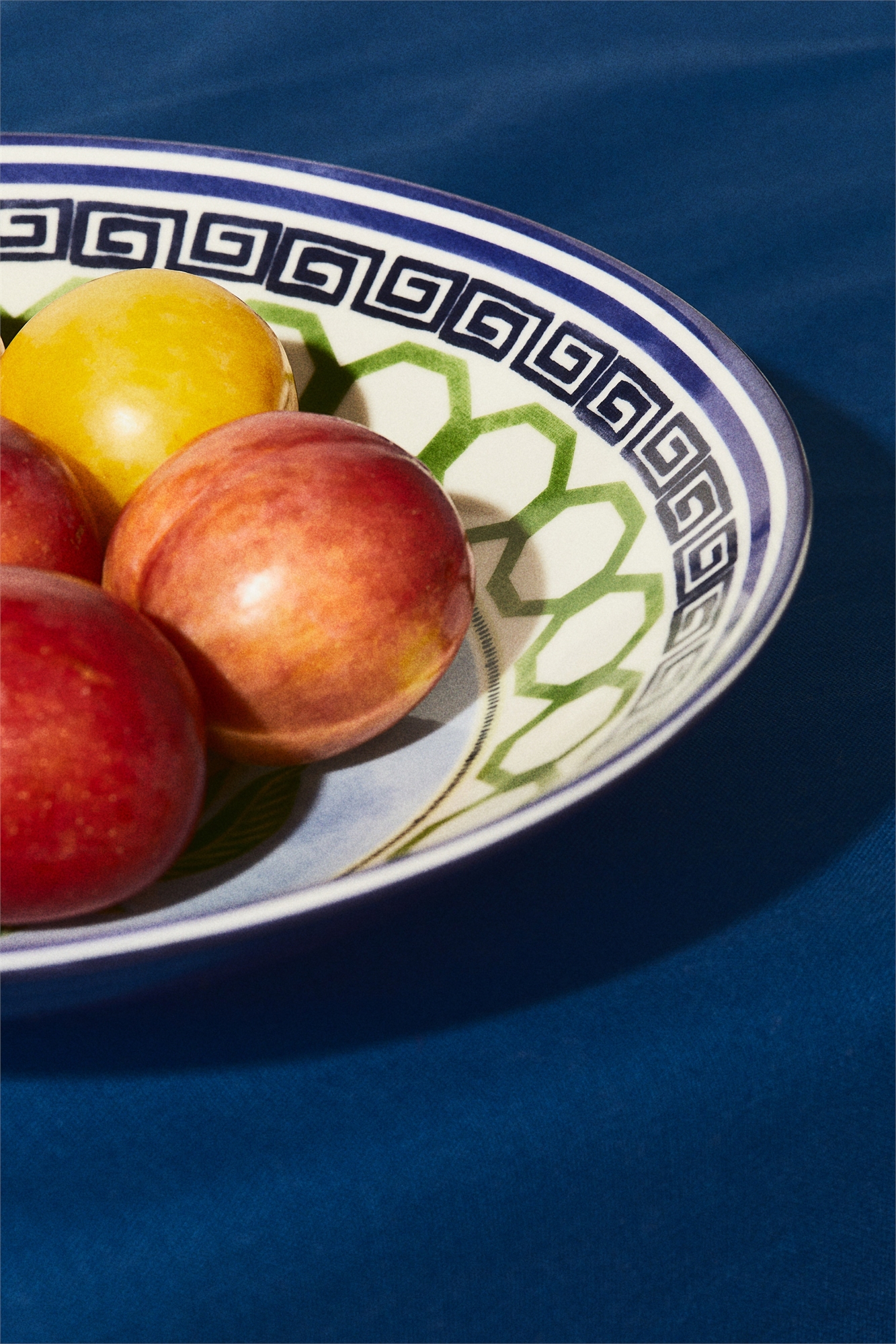 Большая сервировочная чаша из узорчатого фарфора. Высота 8 см. Диаметр 32 см.