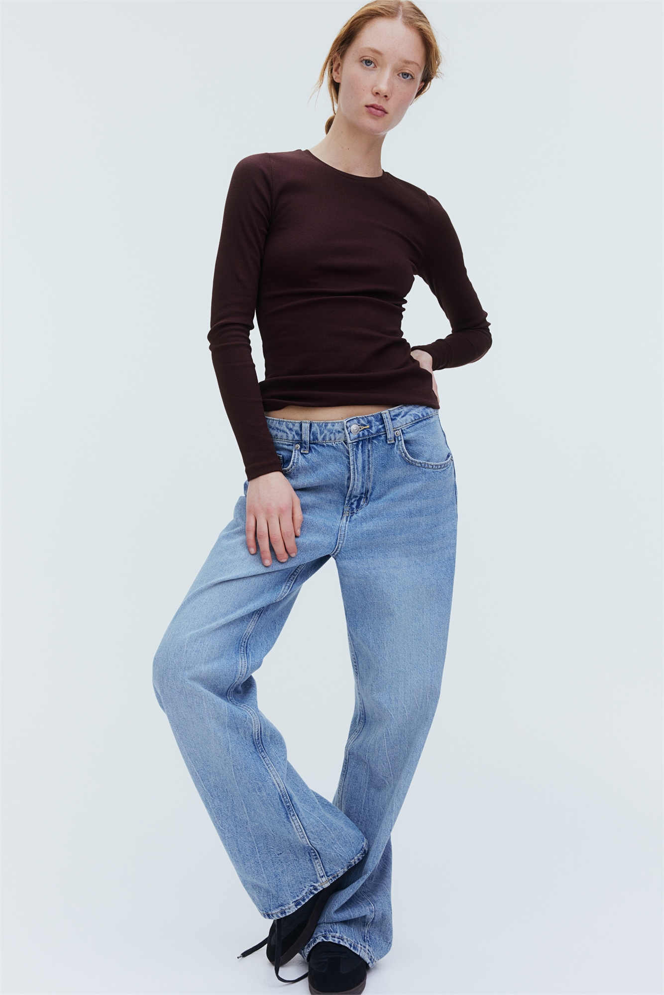 Облегающий топ из мягкого ребристого хлопкового джерси с круглым вырезом и длинными рукавами.