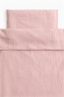 Комплект постельного белья для детской кроватки с пододеяльником и наволочкой из мягкого хлопкового муслина. Комплект выполнен в однотонном цвете и легко сочетается с другими цветами и узорами, создавая прекрасное индивидуальное постельное белье. Пододеяльник застегивается на потайные кнопки внизу, а наволочка имеет отверстие в виде конверта. Муслин хорошо пропускает воздух и становится мягче с каждой стиркой.