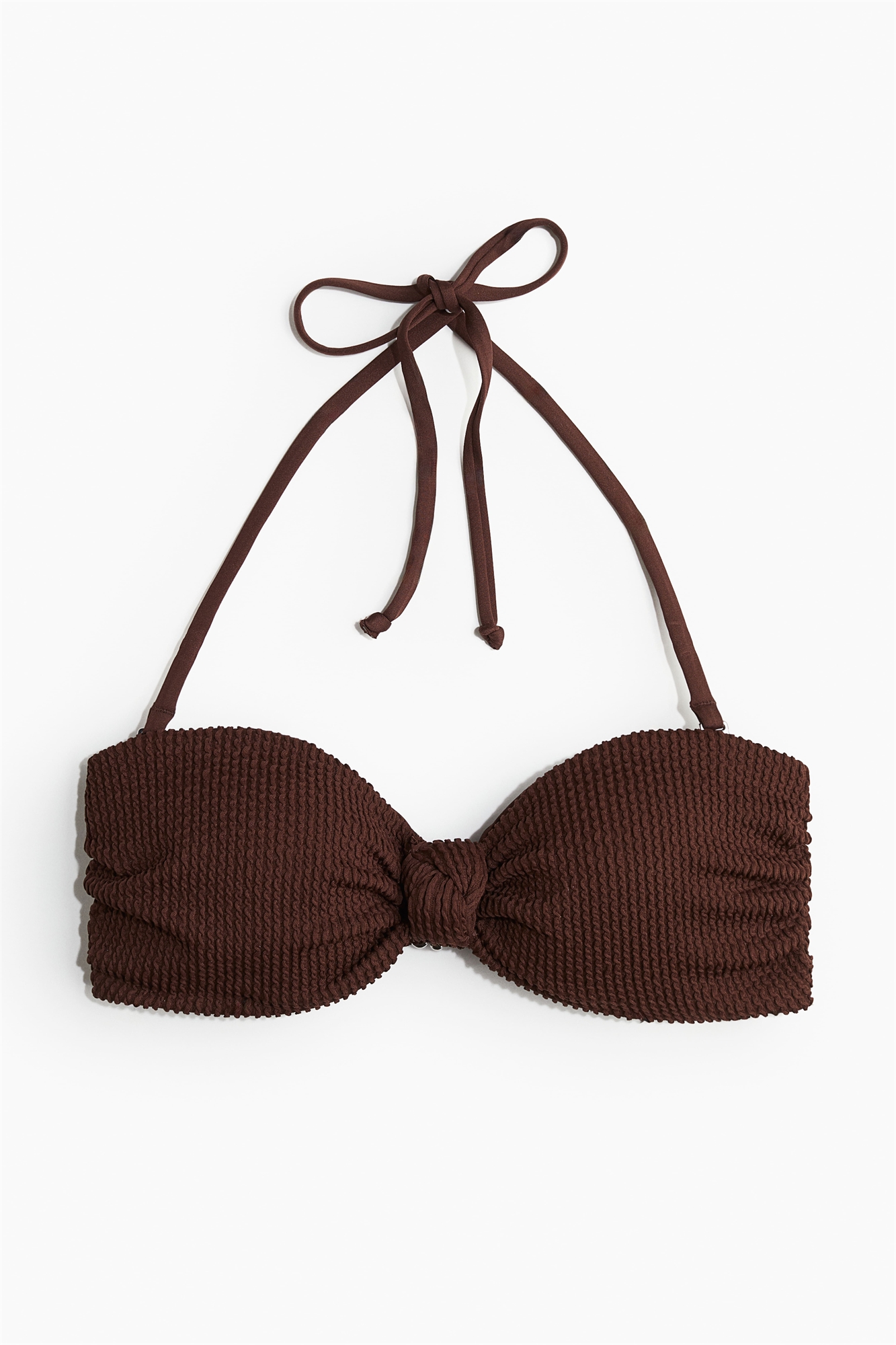 Бикини-бандо на подкладке с декоративной деталью в виде узла спереди и мягкими чашечками, придающими форму бюсту и обеспечивающими хорошую поддержку. Съемные бретели и регулируемая застежка-крючок сзади. Скрытая силиконовая отделка в верхней части и боковая поддержка.