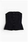 Короткий приталенный топ-труба из мягкого трикотажа с пуговицами спереди и скрытой силиконовой отделкой в верхней части для фиксации на месте.