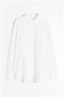 Рубашка из воздушного льна с воротником, пуговицами спереди и двухслойным ярмом сзади. Слегка спущенные плечи, длинные рукава с манжетами на пуговицах, накладной нагрудный карман и мягко закругленный подол.