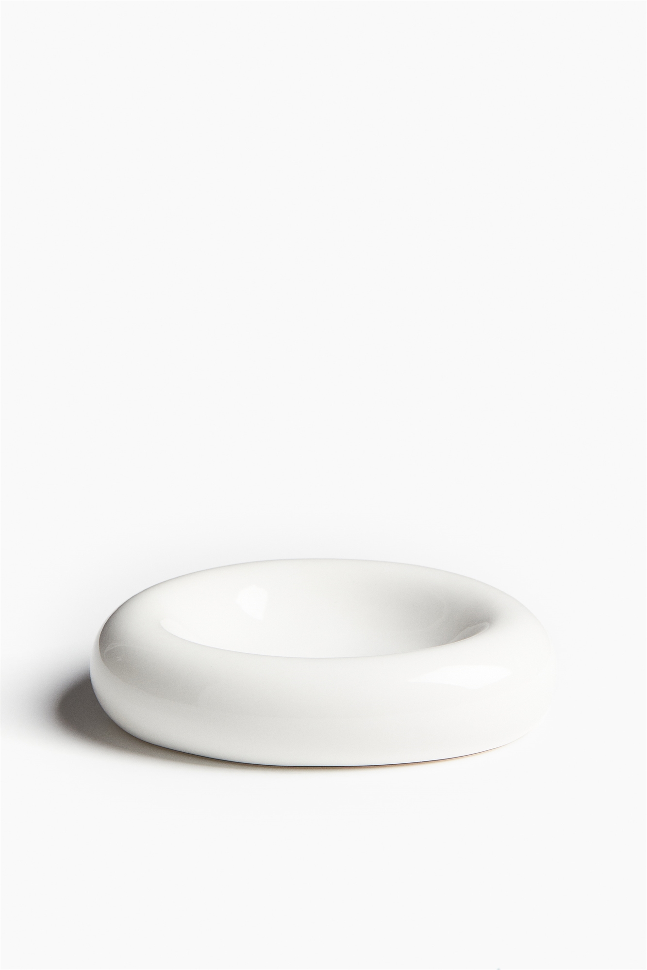 Небольшая миска из глазурованного керамогранита мягкой, слегка неправильной формы. Высота 3,7 см. Ширина 13,8 см. Длина 15,5 см.