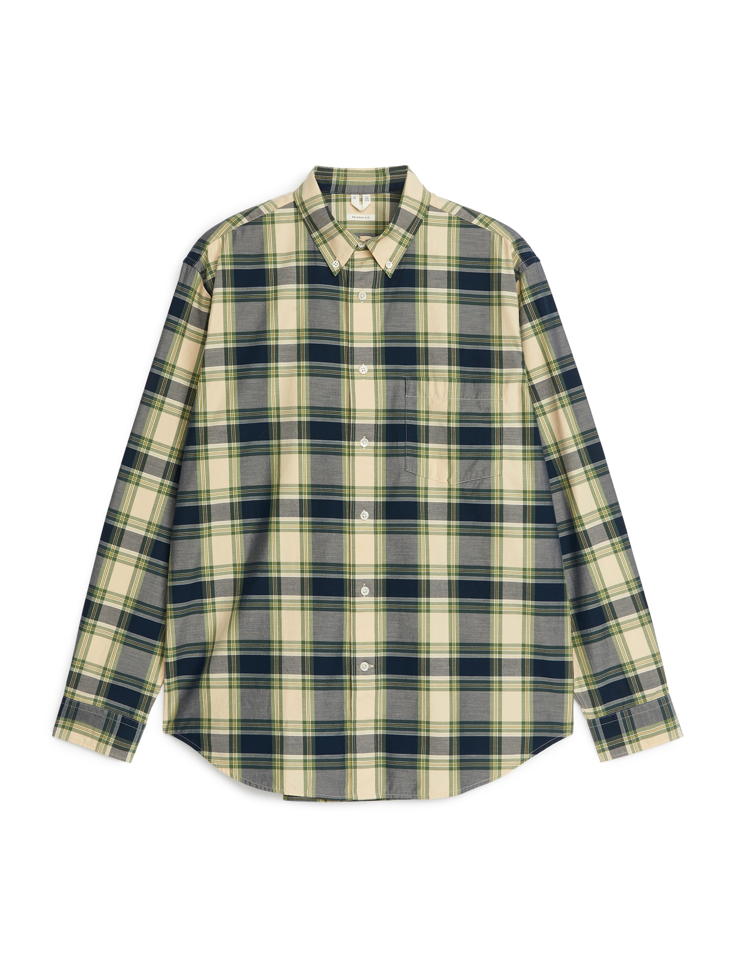 Рубашка сшита из мягкой хлопковой саржи. В непринужденном стиле с отложным воротником на пуговицах и одним нагрудным карманом. Манжеты на пуговицах. Изогнутая линия подола. Перламутровые пуговицы, что означает, что этот продукт содержит материал животного происхождения.