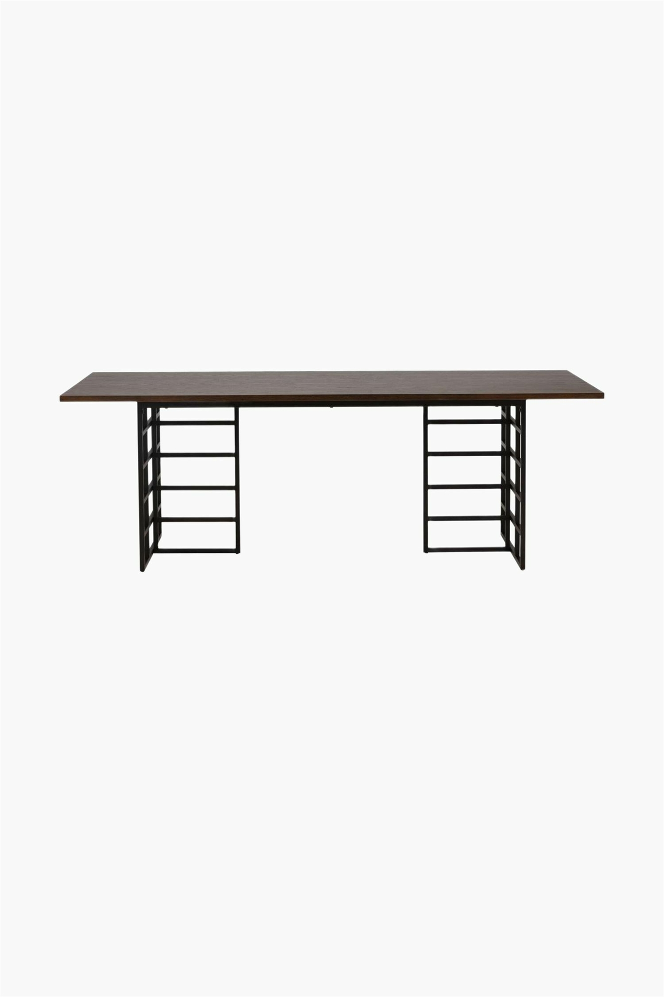 Обеденный стол Ystad впечатляет своим модным дизайном! Этот модный обеденный стол имеет красивую прямоугольную столешницу из МДФ с дубовым шпоном и две декоративные металлические рамы промышленного вида. Этот обеденный стол идеально подходит для создания привлекательной атмосферы в вашем доме. Сочетайте его с набором удобных обеденных стульев, чтобы добиться идеального сочетания стиля и комфорта! Размеры: 100x220 см.