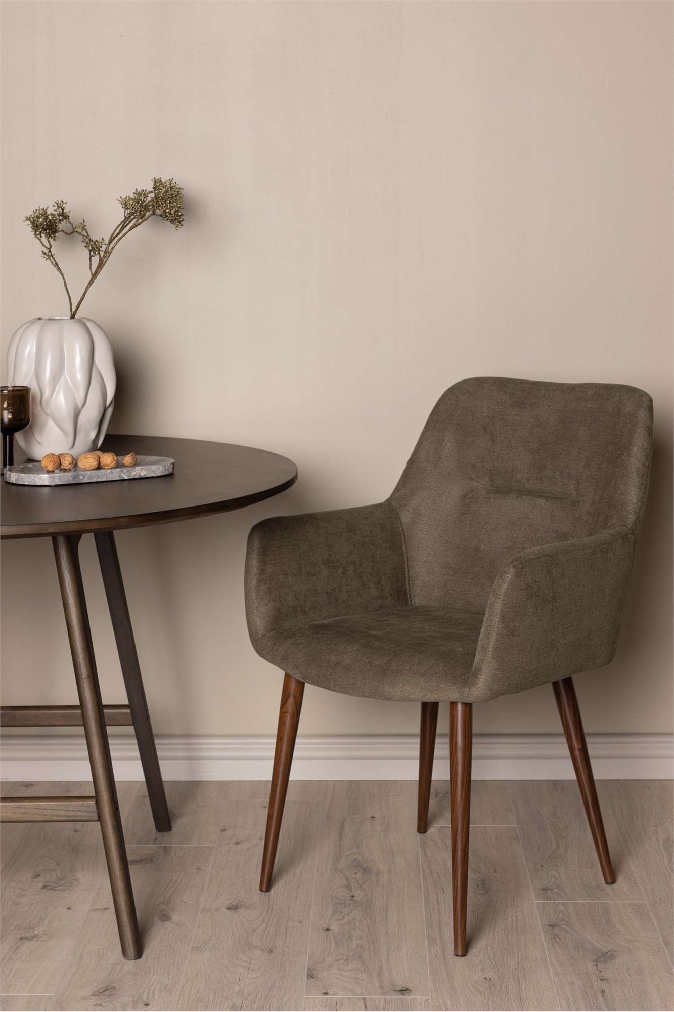 Наслаждайтесь бескомпромиссным стилем и комфортом! С этим удобным обеденным стулом из серии Tomorrow вы сможете подолгу сидеть и наслаждаться уютом. Полностью мягкое сиденье с интегрированными подлокотниками выполнено из полиэфирной ткани, а ножки стула с небольшой выпуклостью выполнены в современном орехово-коричневом цвете. Создайте привлекательную и очаровательную атмосферу, уютную и знакомую! Размеры: 90x62x60.