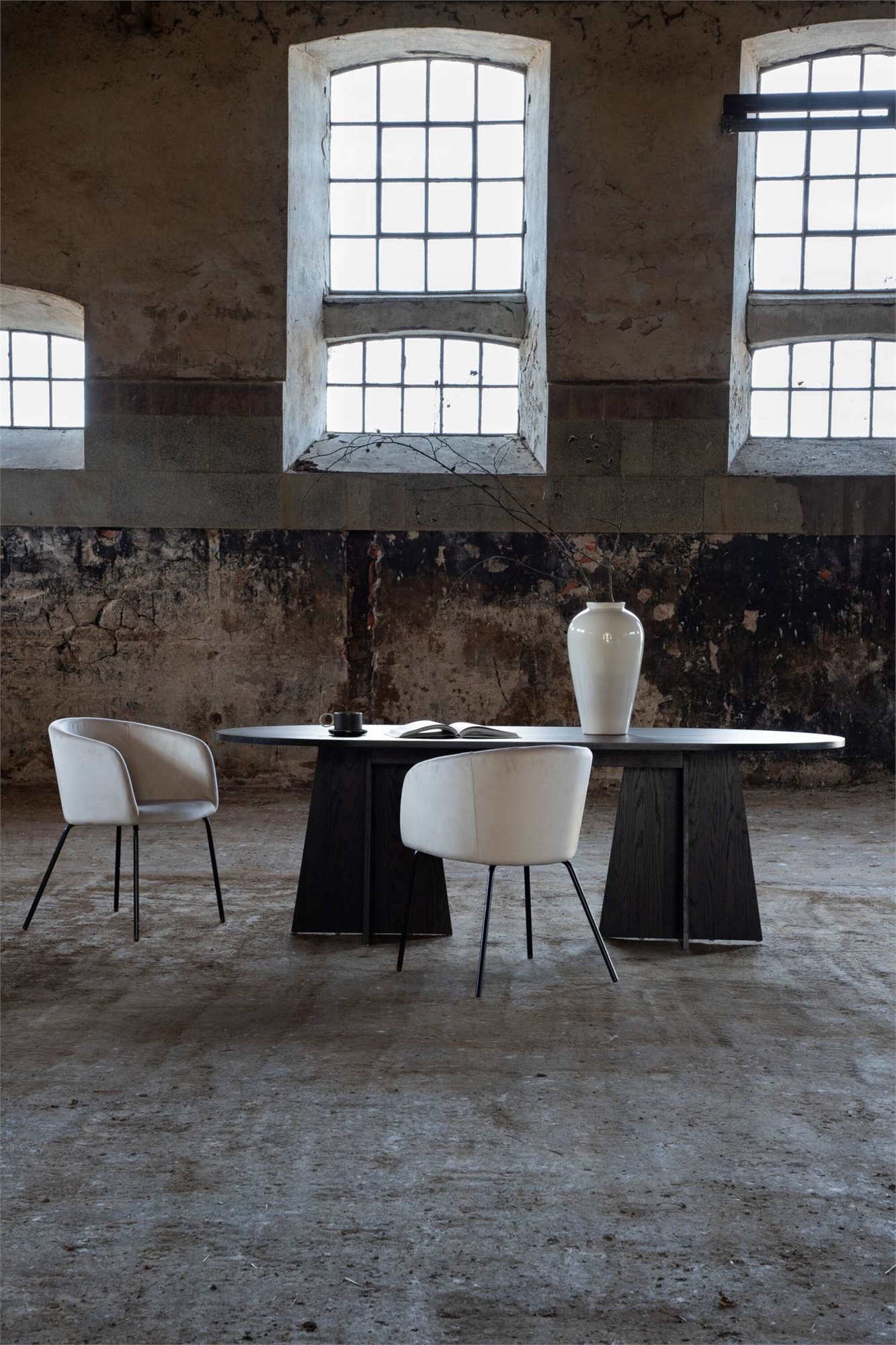 Обставьте свой дом впечатляющим обеденным столом! Bootcut имеет уникальный дизайн с овальной столешницей из МДФ со шпоном и ярким каркасом с двумя литыми ножками в открытом дизайне. Тонкая столешница создает впечатление минимализма и выгодно контрастирует с прочным каркасом. Сочетайте его с парой удобных обеденных стульев, и вы получите полноценный обеденный комплект, который выдержит испытание временем! Размеры: 115x230 см. Высота: 75 см.