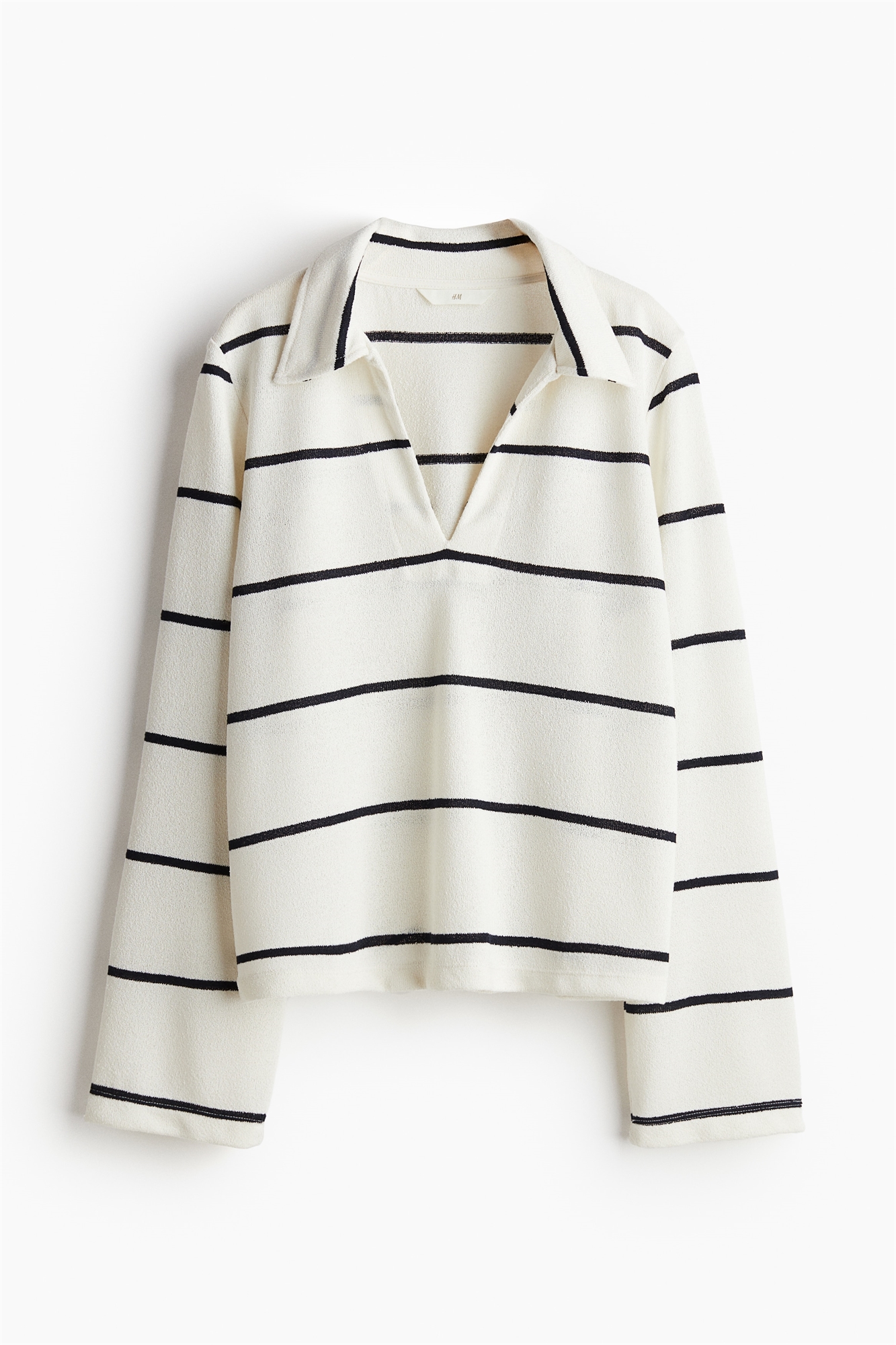 Свободная рубашка с длинными рукавами из легкого фактурного джерси с воротником и V-образной проймой.