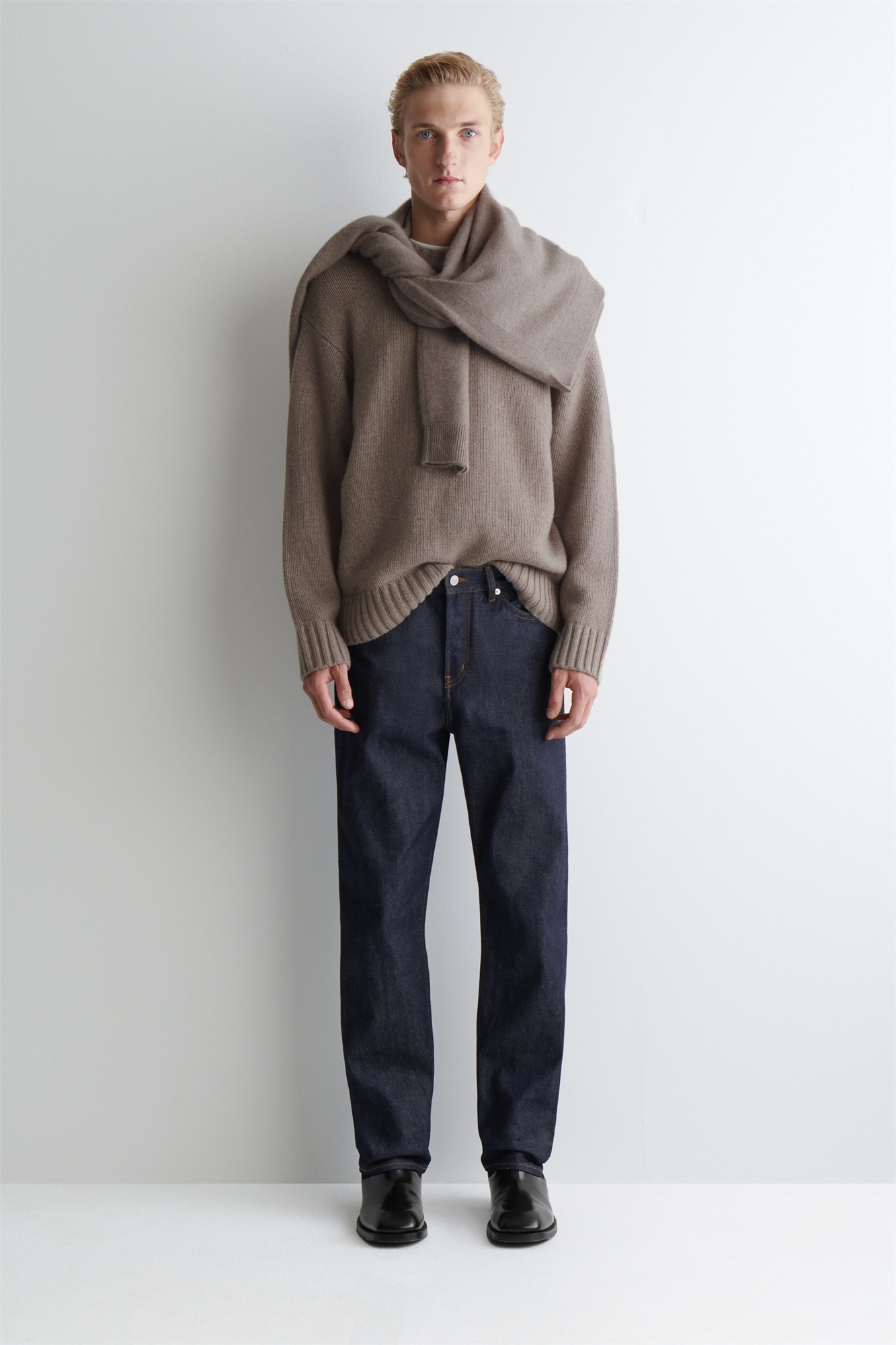 Познакомьтесь с новыми повседневными джинсами. Они сшиты из 12-узлового необработанного денима, плотного и хрустящего - по мере износа ткань выцветает, смягчается и принимает совершенно уникальный для вас вид. Модель имеет прямой крой, а на манжетах видна отделка из селвиджа премиум-класса. Они подходят ко всему, но нет более классического сочетания, чем джинсы и белая футболка. Прямые штанины, regular fit, mid-rise 11,5oz, selvedge denim, застежка на пуговицах Органический хлопок выращен из негенетически модифицированных семян без использования химических удобрений и пестицидов Ткань: 80% органического хлопка, 20% переработанного хлопка. Подкладка карманов: 65% переработанный полиэстер, 35% органический хлопок / Машинная стирка Внутренняя длина штанины размера 32 составляет 77,4 см / Модель носит размер 32