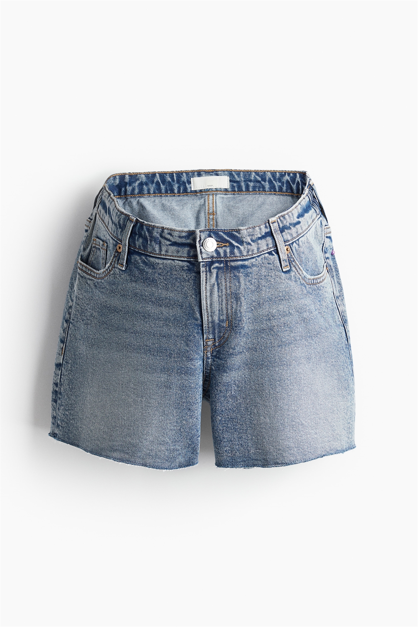 Шорты с 5 карманами из слегка тянущегося денима с необработанными краями. Заниженная талия, ширинка на молнии и пуговице и скрытая регулируемая резинка в поясе для комфортной посадки во время и после беременности.