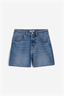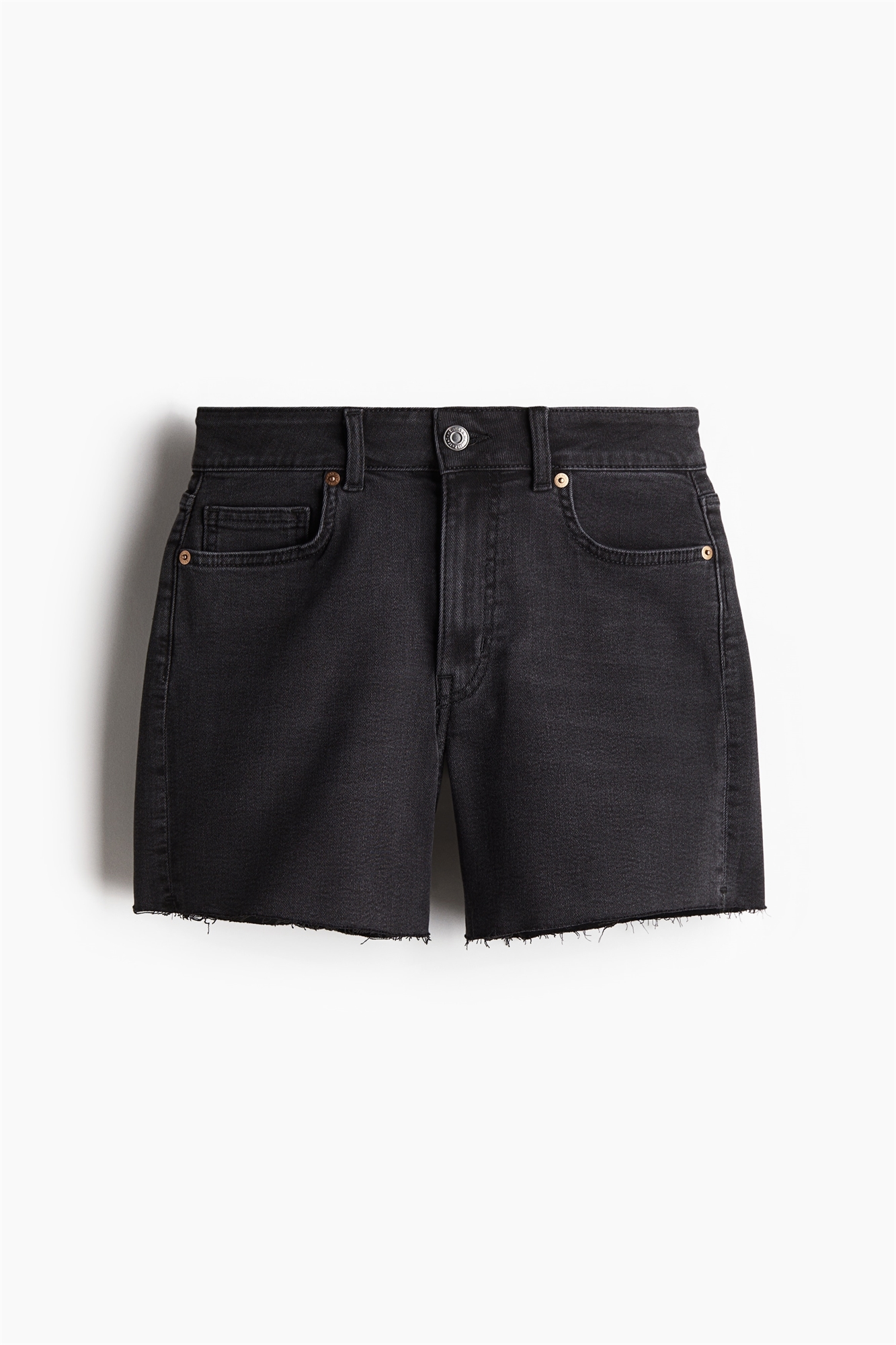 Джинсовые шорты облегающего кроя с 5 карманами, высокой талией, ширинкой на молнии и пуговице и необработанными краями.