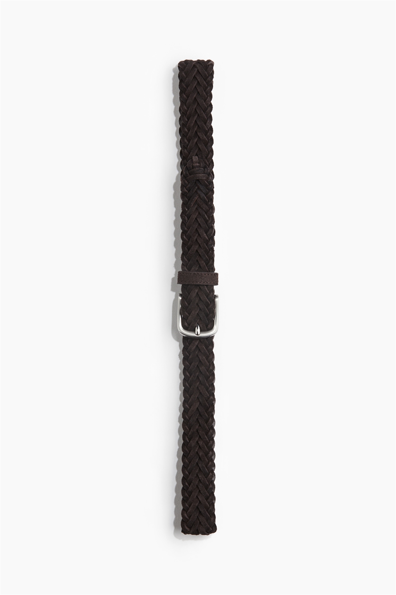 Ремень из плетеной кожи с металлической пряжкой. Ширина 3 см.