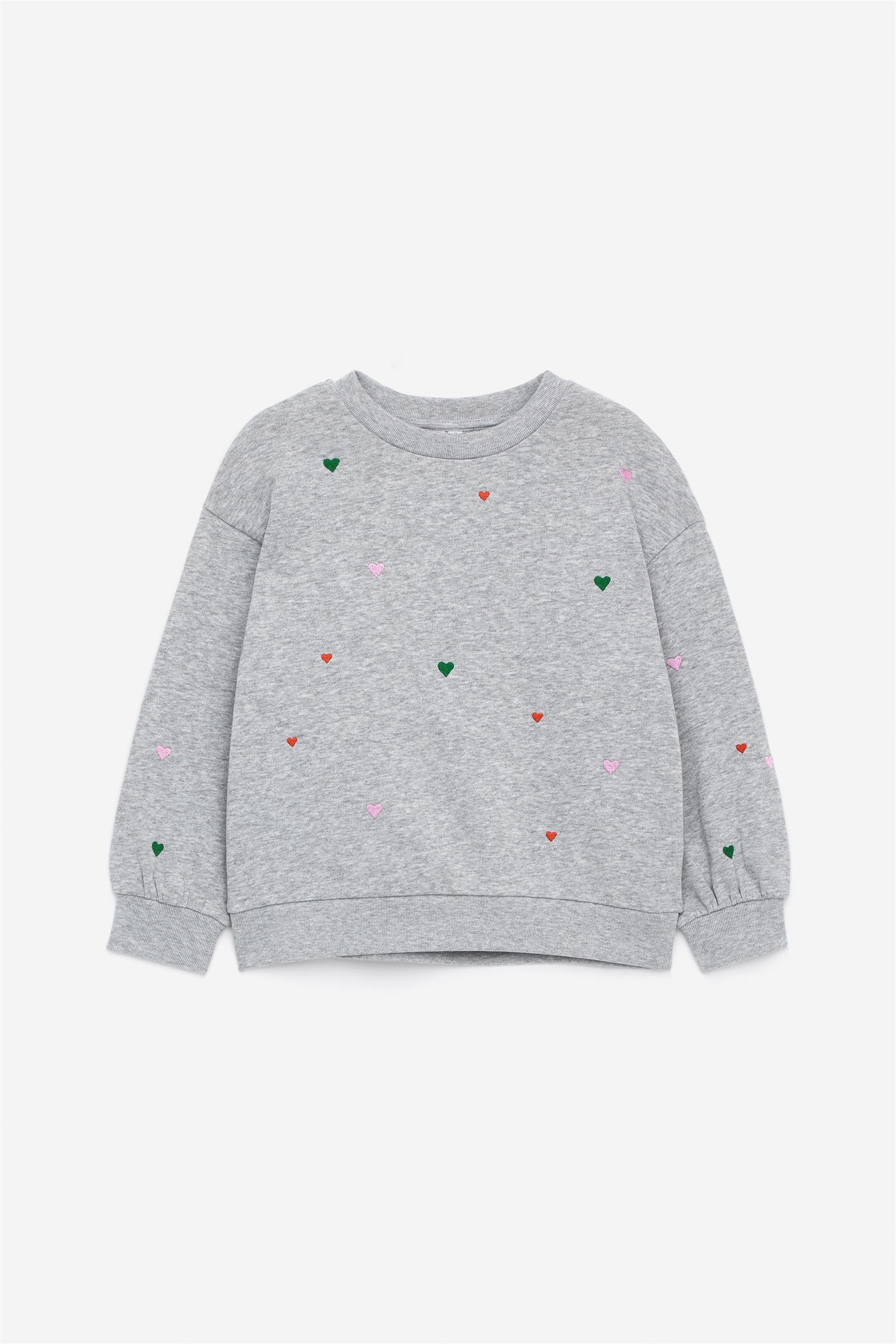 Толстовка с вышитыми деталями, изготовленная из мягкой хлопковой махры. Горловина и ребристая отделка. Свободный крой.