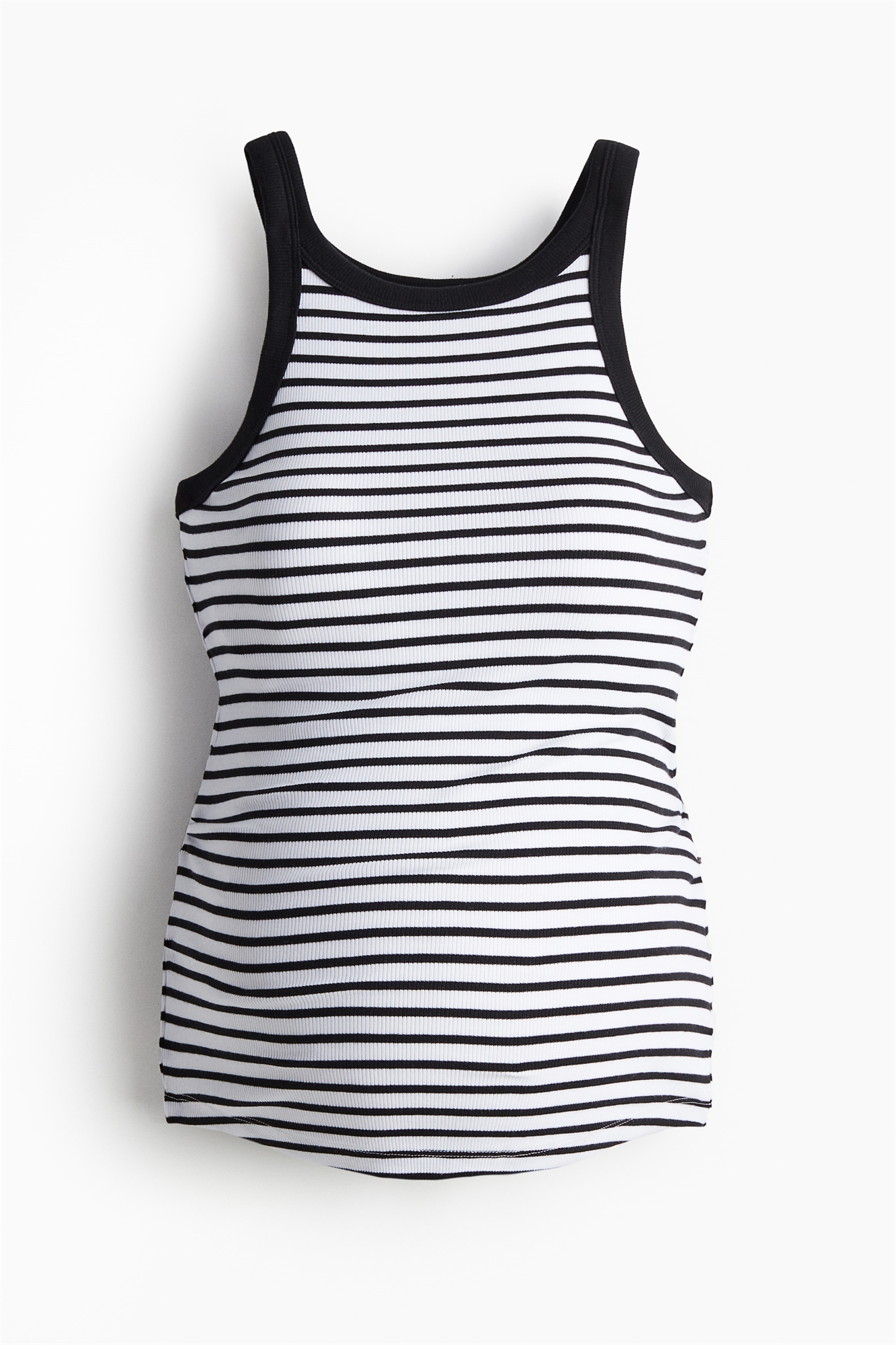 Облегающий топ из ребристого хлопкового джерси с круглым вырезом, широкими бретелями и прямым покроем.
