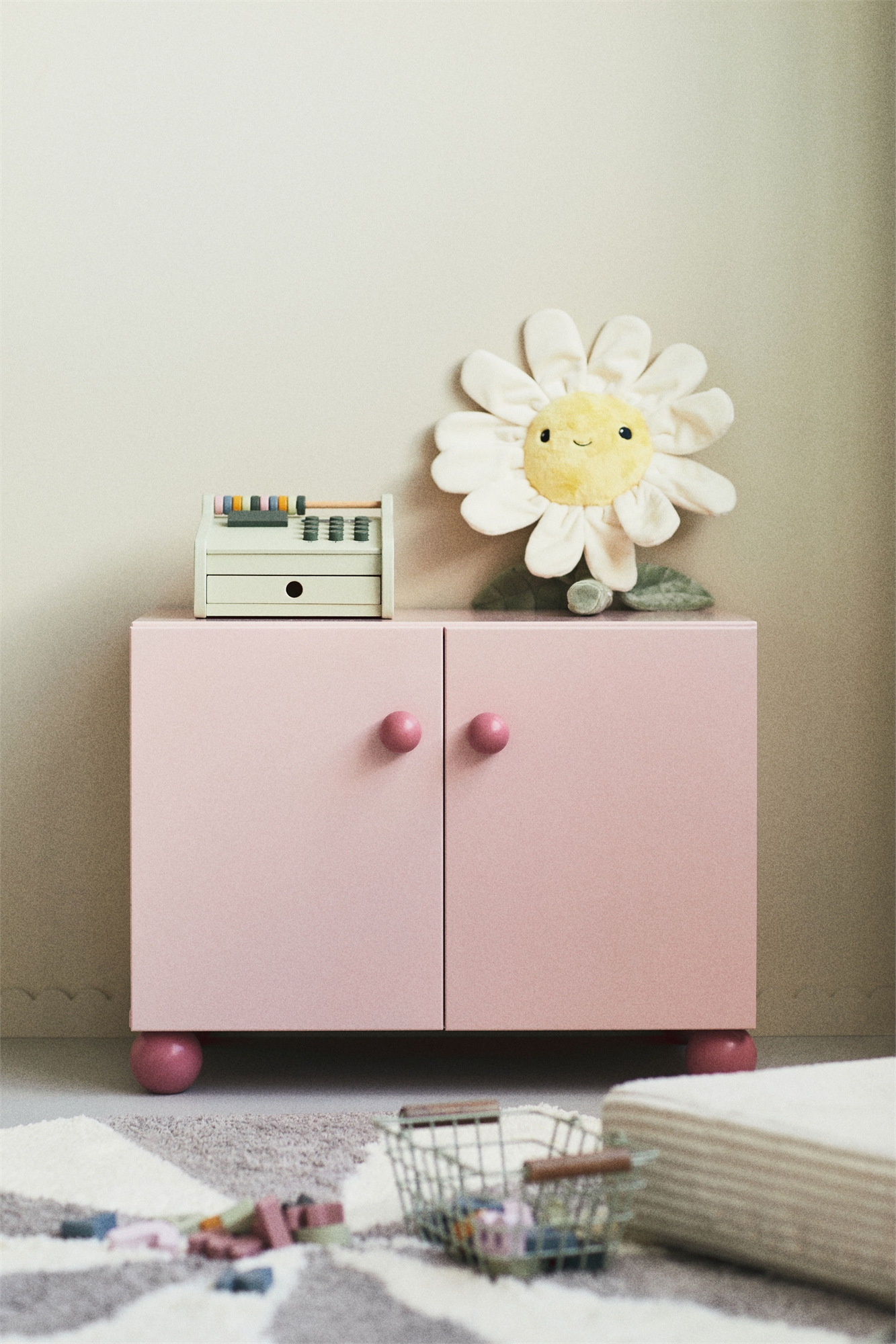 Детский двухдверный шкаф для хранения из крашеного МДФ с полуглянцевой отделкой. Поставляется в плоской упаковке, готовый к сборке. Винты входят в комплект. Глубина около 35 см. Высота 45 см. Длина 60 см.