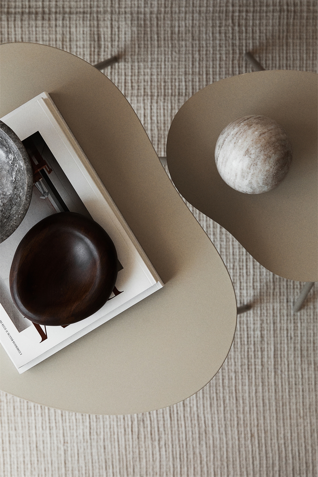 Изящные приставные столики из металла асимметричной формы, которые внесут современный штрих в ваш дом. Большой столик: Ширина 45,6 см. Высота 46 см. Длина 57,7 см. Маленький столик: Ширина 31 см. Длина 37 см. Высота 40 см.