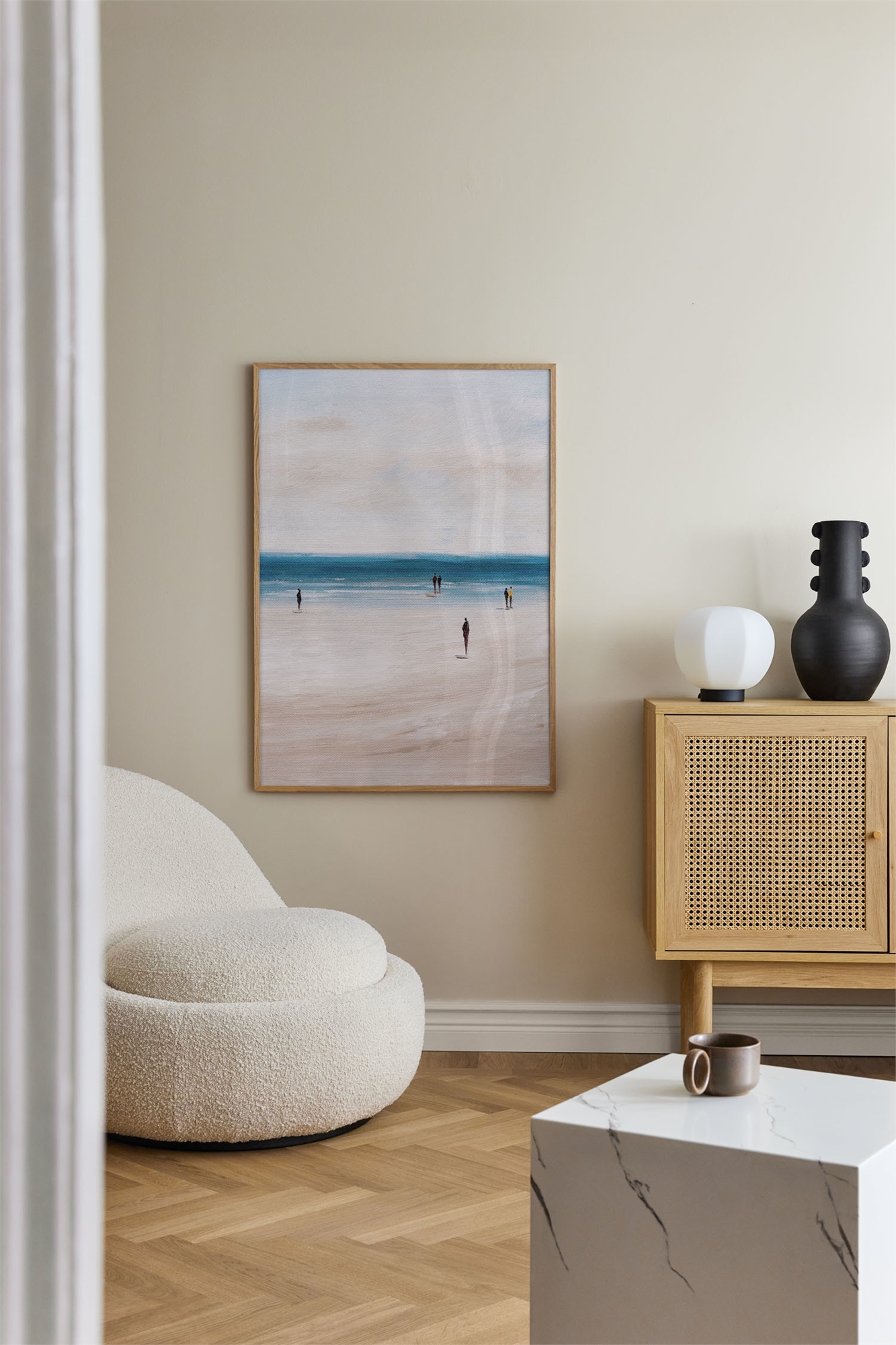 Нарисованный вручную мотив с изображением людей, гуляющих по пляжу.