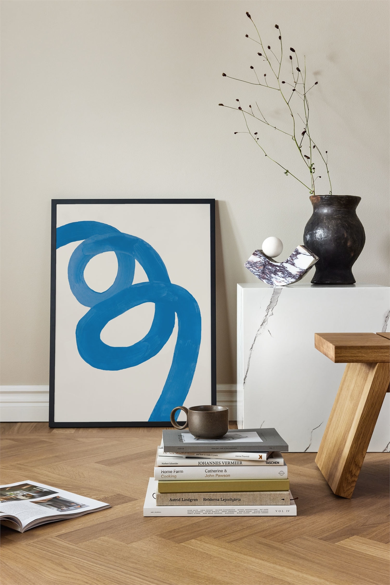 Ручная роспись абстрактного мотива в виде толстой синей линии изогнутой формы. Этот мотив входит в коллекцию "Летнее блаженство", созданную нашими дизайнерами для Postery Atelier.