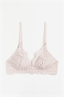 Мягкий бюстгальтер для кормления из кружева без проводов с регулируемыми бретелями и открытыми чашечками на подкладке с местом для вкладышей. Застежка на крючки и глазки сзади.
