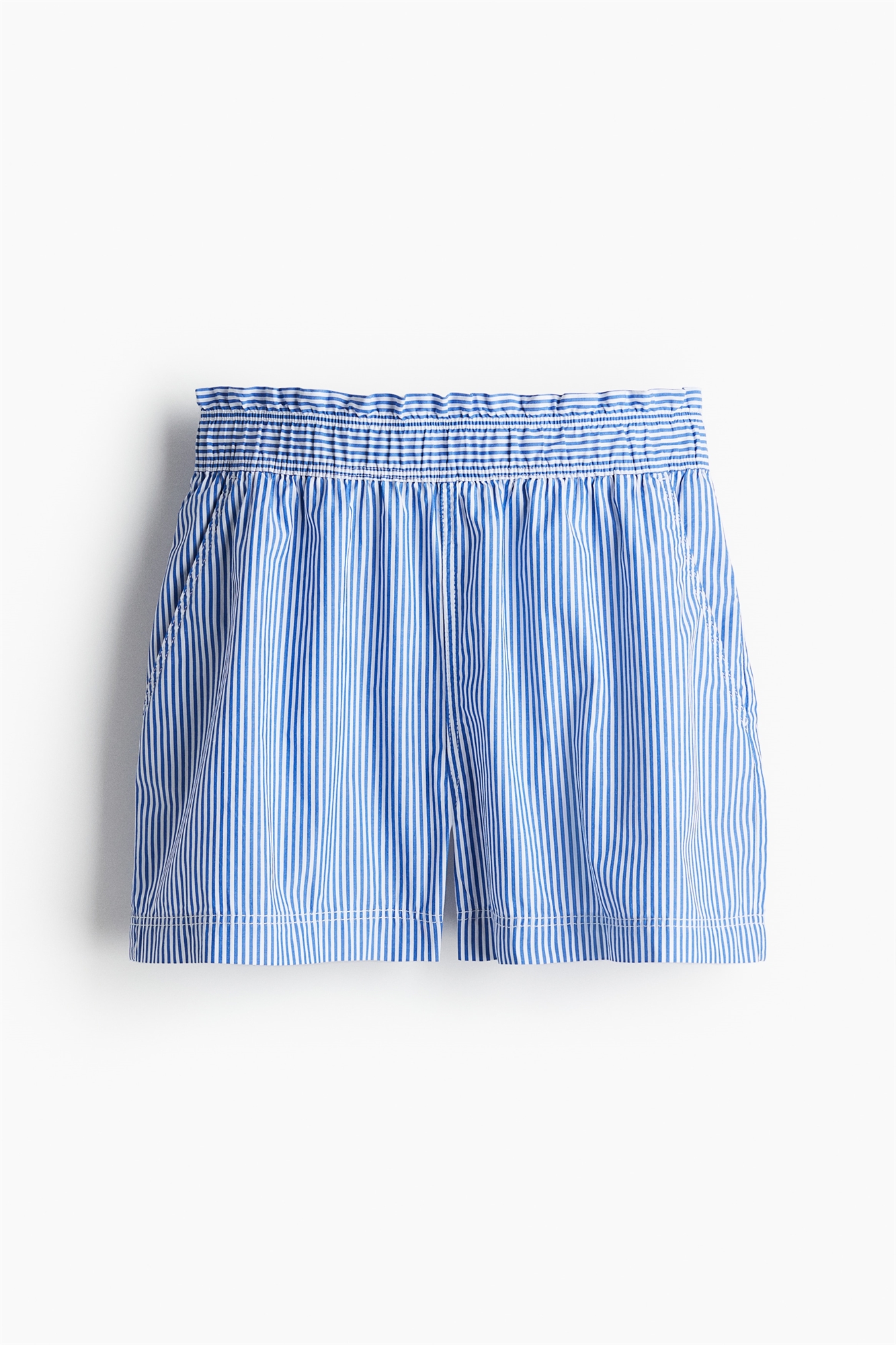 Шорты свободного покроя из хлопкового поплина с высокой эластичной талией с небольшой оборкой и диагональными боковыми карманами.