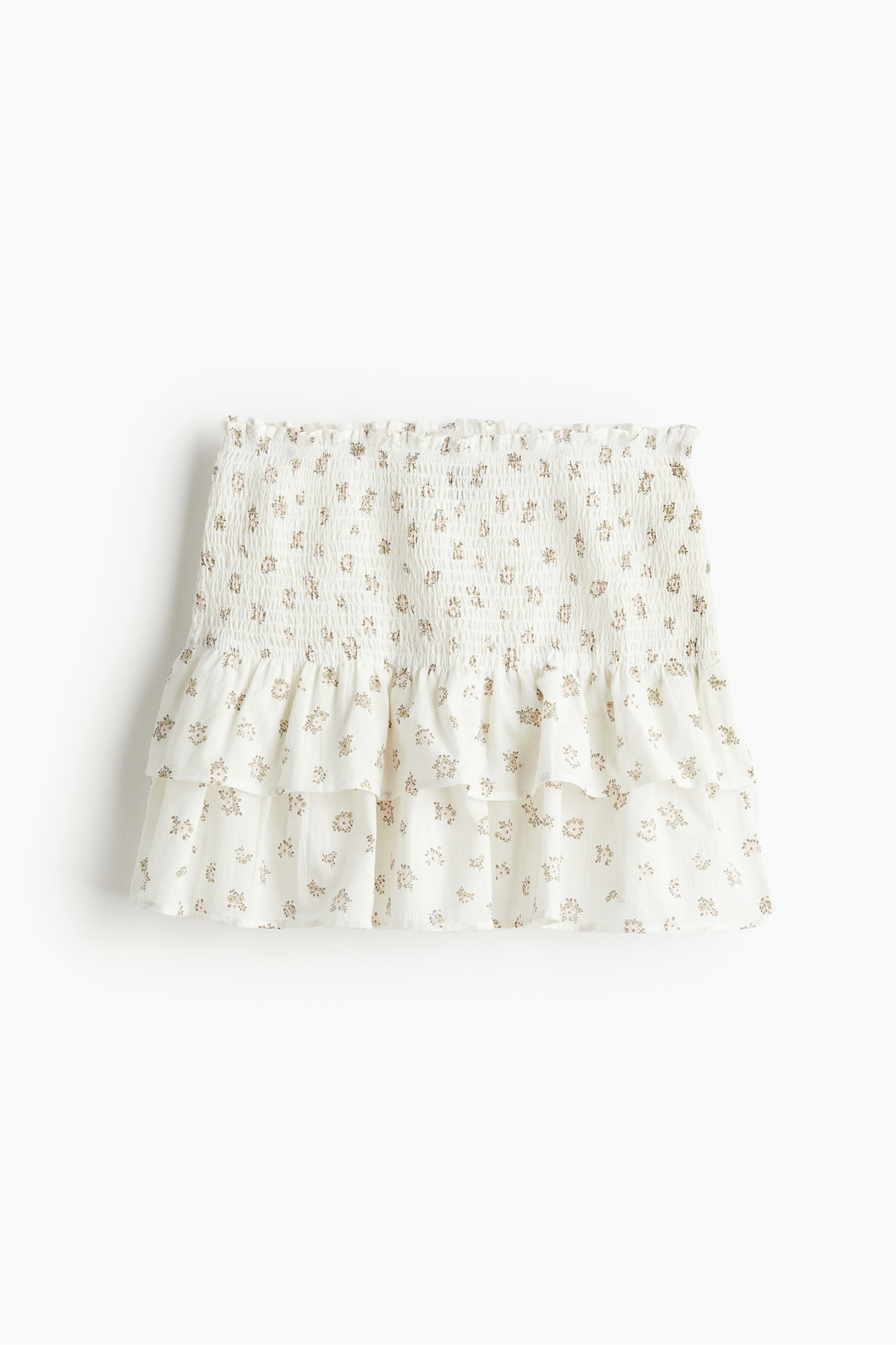 Облегающая юбка-мини из мягкого хлопкового полотна с широким швом и небольшой оборкой в верхней части. Ярусы над подолом придают объем и движение. Без подкладки.