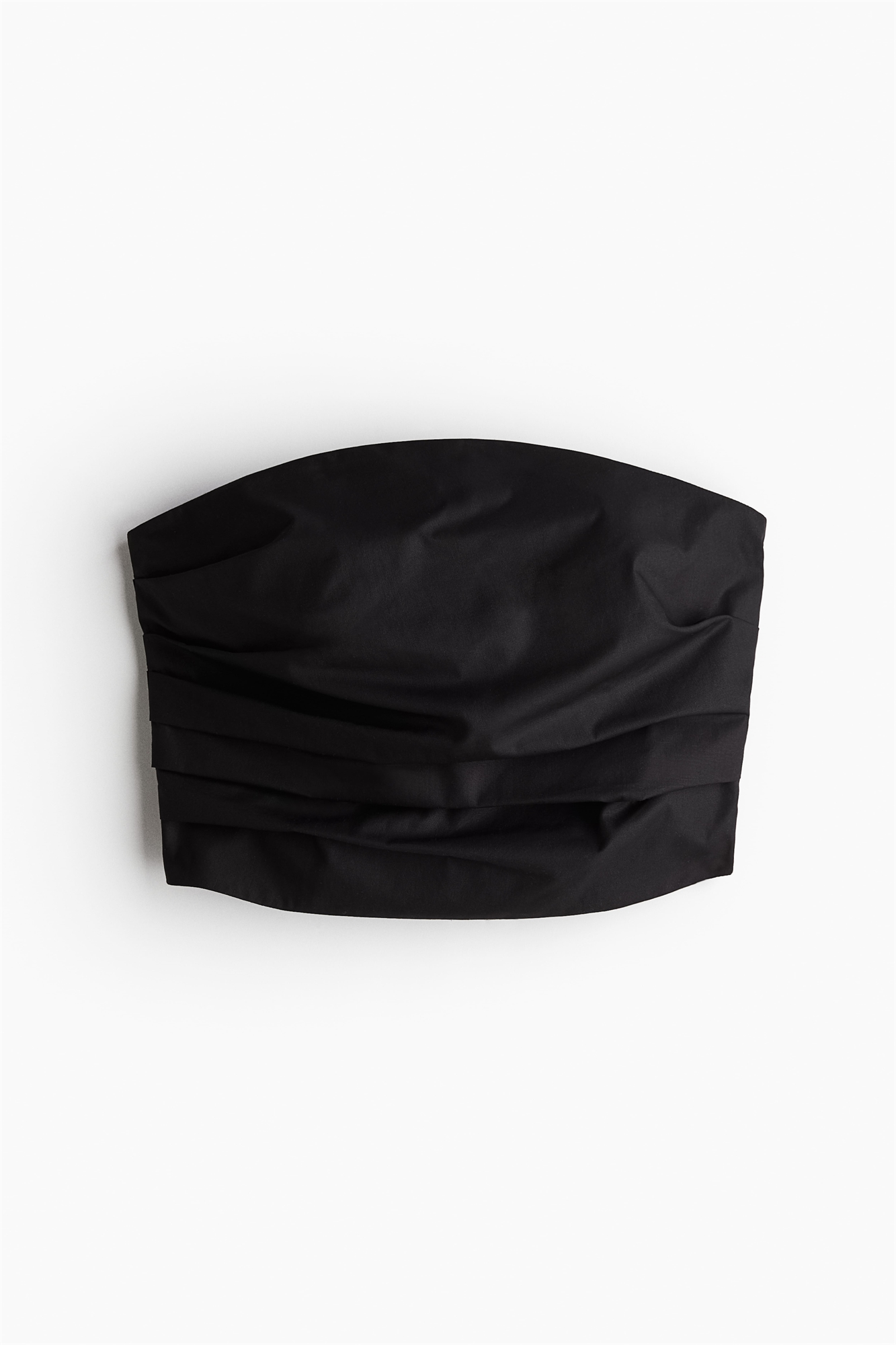 Облегающий топ-бандо из тканого материала со складками с одной стороны, потайной застежкой-молнией с другой и широкой планкой на спине. На подкладке.