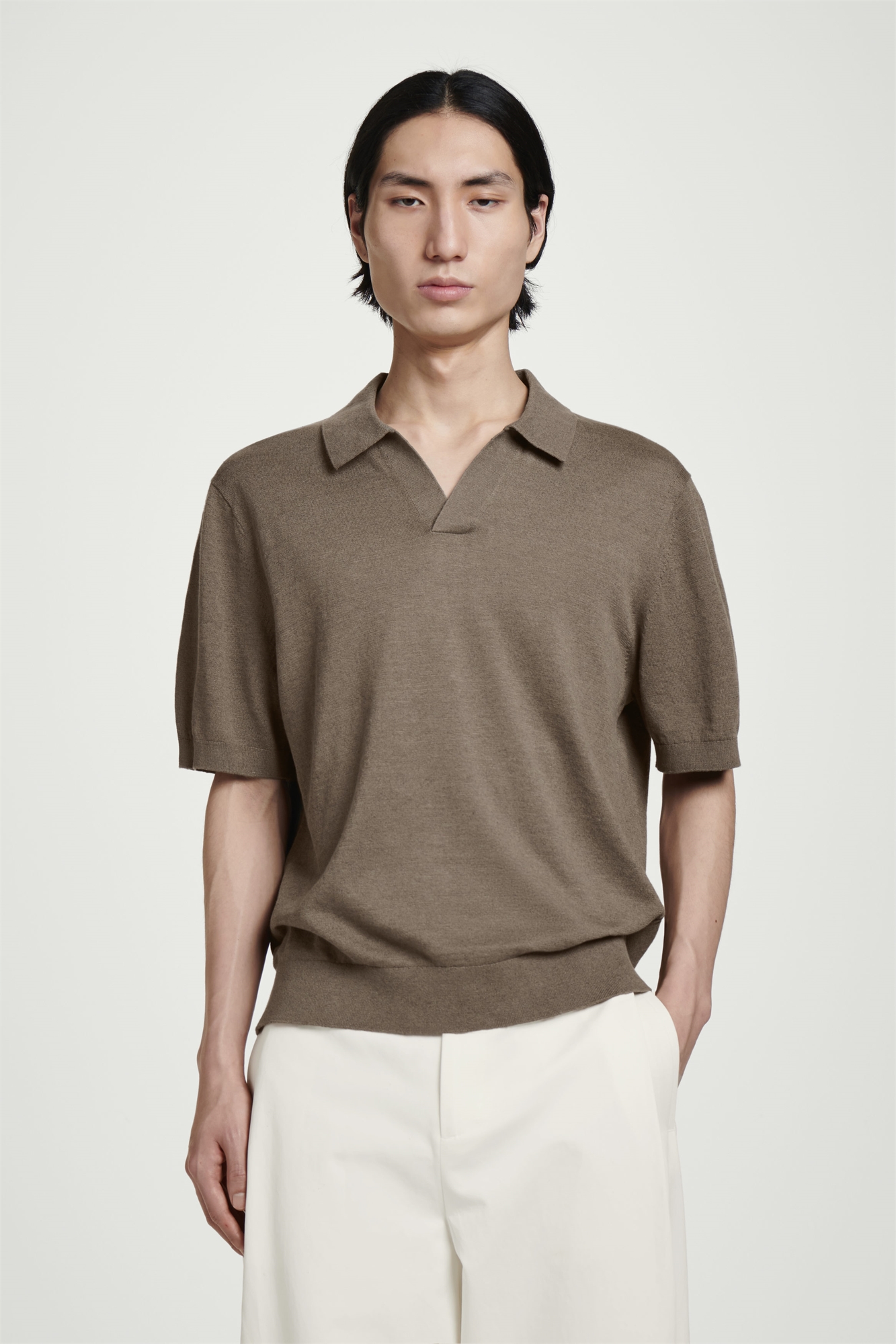 В этом сезоне классическая рубашка-поло выполнена из натуральной дышащей смеси льна и хлопка, которая вяжется для создания тонкого меланжевого эффекта. Рубашка имеет непринужденный крой и открытый воротник. Свободный крой Ткань: 73% льна, 27% хлопка. Без учета отделки / Машинная стирка Длина по спинке для размера M составляет 66 см / Модель носит размер M