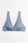 Бикини-топ на подкладке с мягкими чашечками для увеличения объема бюста и декольте. Широкие регулируемые бретели, боковая поддержка и регулируемая застежка-крючок сзади.