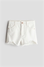 Шорты с 5 карманами из моющегося хлопкового денима с непринужденной посадкой. Высокая талия с регулируемой резинкой, ширинка на молнии и пуговице. Необработанные края.