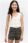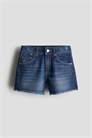 Шорты с 5 карманами из моющегося хлопкового денима с непринужденной посадкой. Высокая талия с регулируемой резинкой, ширинка на молнии и пуговице. Необработанные края.