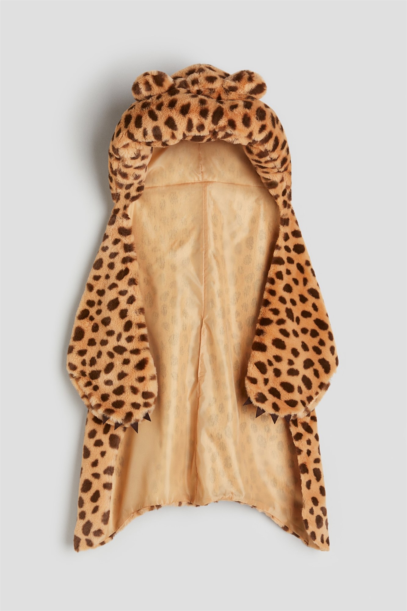 Маскарадная накидка из мягкого ворса с принтом по всей поверхности, превращающим владельца в игривого и скрытного леопарда. Капюшон с мягкими ушками и опушкой. Открытые рукава-долманы с карманами для рук на манжетах и аппликацией из фетра в виде когтей. Этот плащ создан для долгого использования и любви - заботьтесь о нем, передавайте его по наследству, ремонтируйте и перерабатывайте.