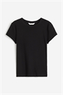 Облегающая футболка из ребристого трикотажа с узкой окантовкой по вырезу горловины.