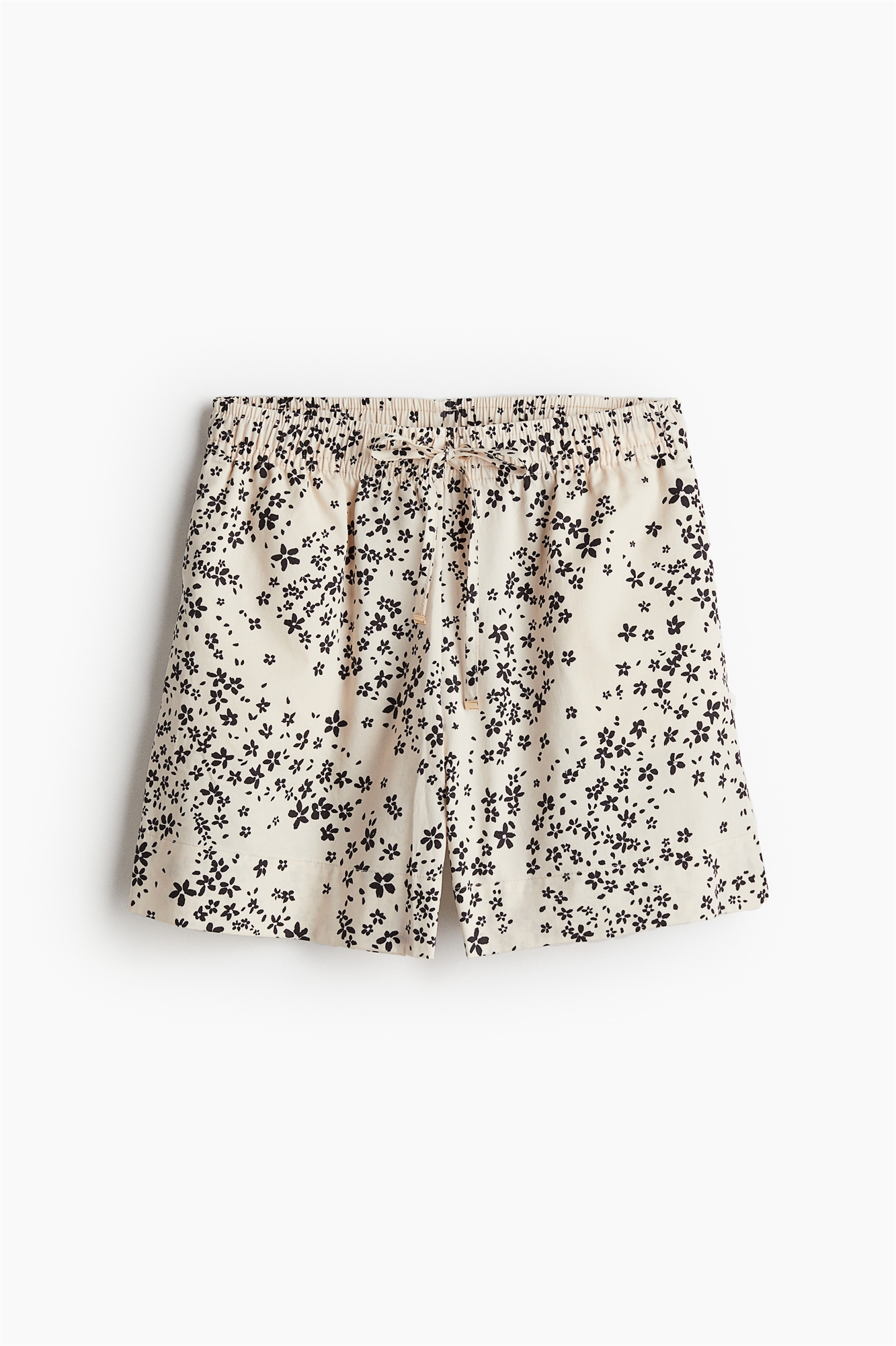 Шорты свободного покроя из хлопкового полотна с высокой талией с эластичной отделкой и узким шнурком. Незаметные карманы в боковых швах.